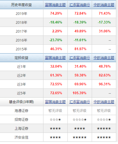 基金星级评定:中欧消费最好两个五星,富国消费最差两个四星。