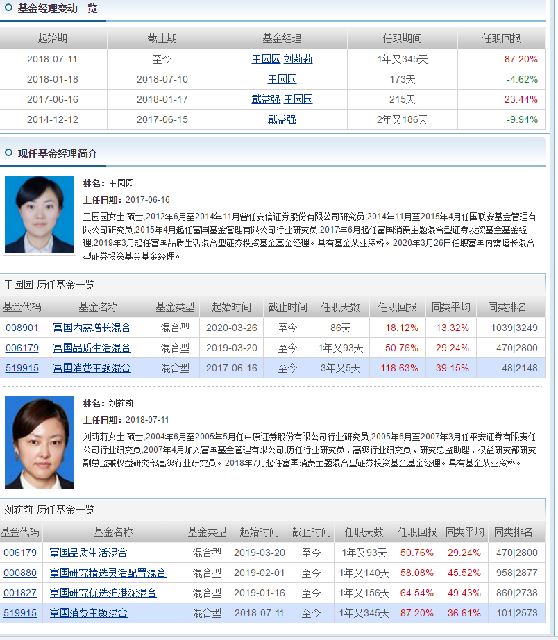 富国消费王园园:学历不详,该基金任期近2年多,现管理3支基金,收益率都超过了同类平均。