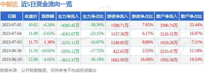 【推荐】中毅达6006107月5日主力资金净卖出458545万元中毅达能涨到多少