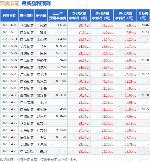 最新盈利预测明细如下: