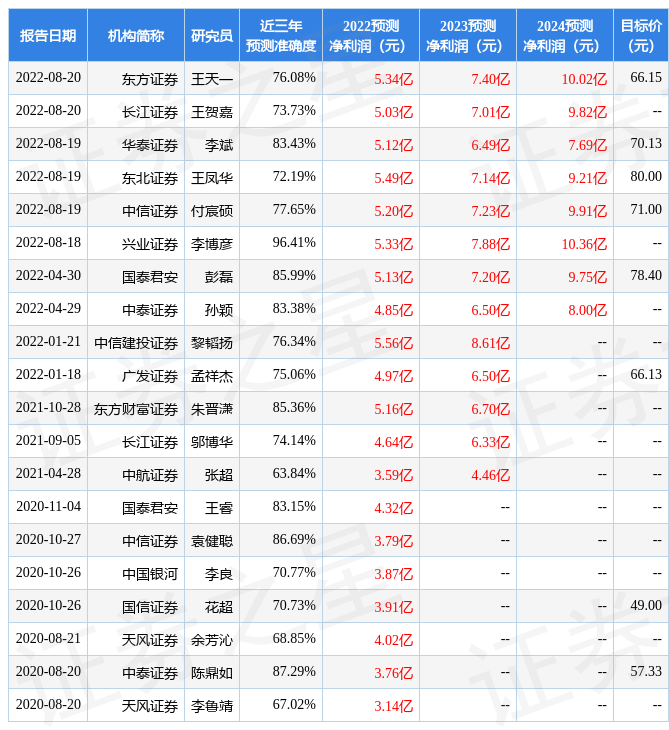 证券之星数据中心根据近三年发布的研报数据计算,兴业证券李博彦研究员团队对该股研究较为深入,近三年预测准确度均值高达96.41%,其预测2022年度归属净利润为盈利5.33亿,根据现价换算的预测PE为57.03。