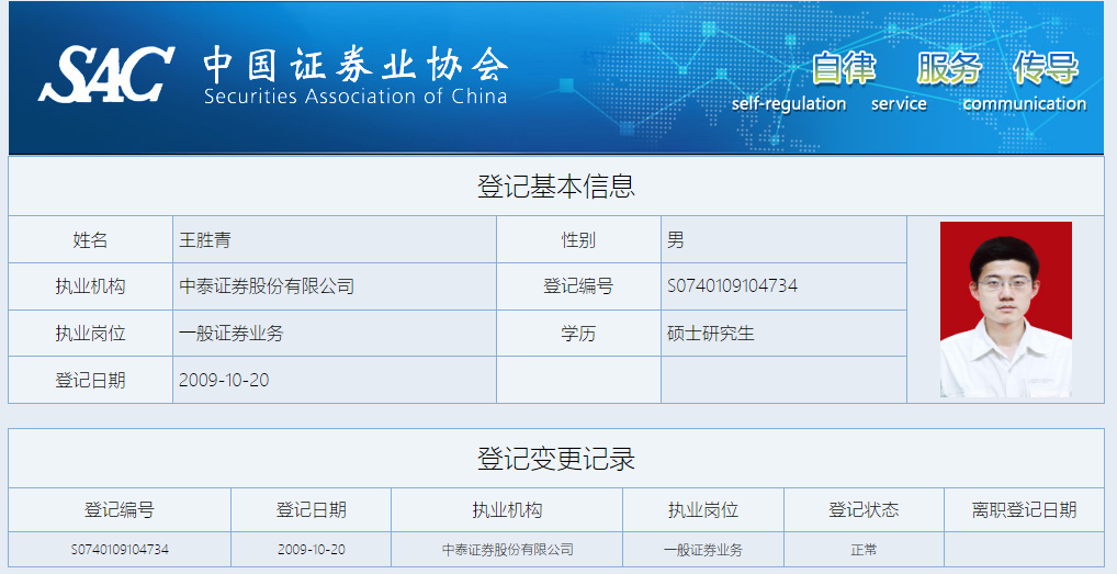 陈骥宁,王胜青从业经历(证券业协会)