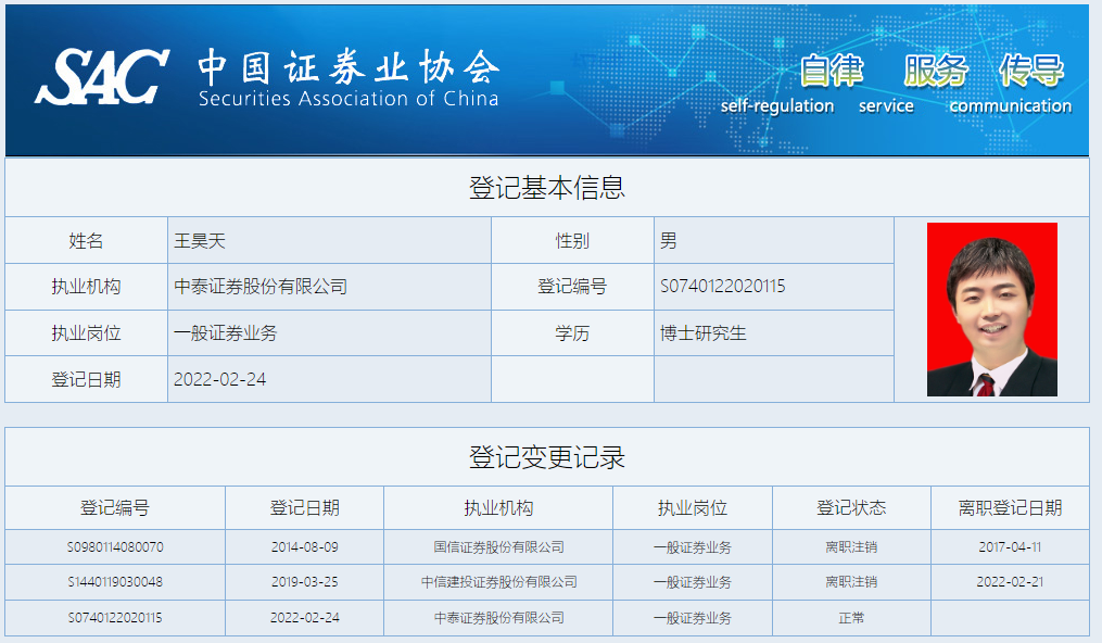 值得注意的是,两人均来自于头部券商,且于2022年2月24日及2月28日进行了从业登记,时隔不到四天,可以看出中泰证券对于自营业务给予了厚望。