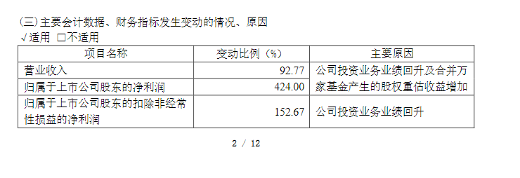 而从最新一期的业绩情况看,2023年一季度中泰证券业绩实现快速回温,营业收入、归母净利润分别同比增长92.77%、424%。在一季报中,中泰证券提及,上述情况的主要原因是公司投资业务业绩回升及合并万家基金产生的股权重估收益增加。