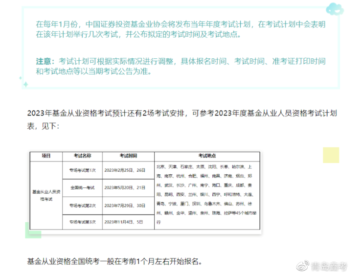 1、今年预计还会再举行几场基金从业资格考试?