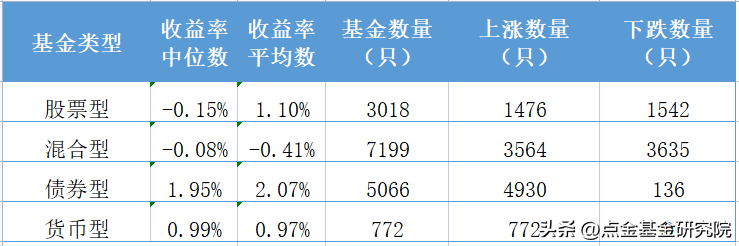 从统计结果可以看出,只要基民买了股票型或者混合型的基金,在今年有约一半的概率是盈利的。如果买入的是债券型基金,则有97%的概率获得了正收益。