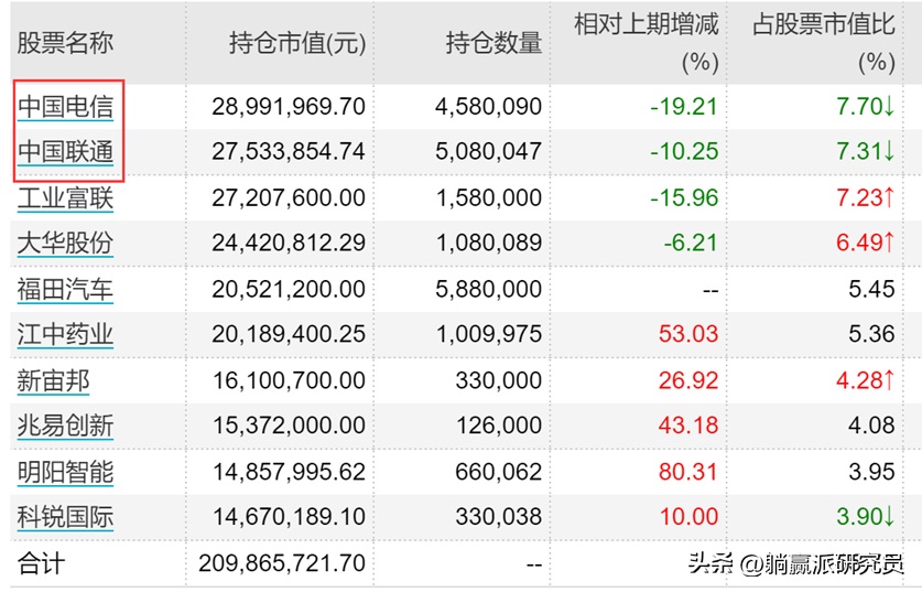 今年一季报,诺安中小盘的第一、第二大重仓股都是电信运营商,分别是