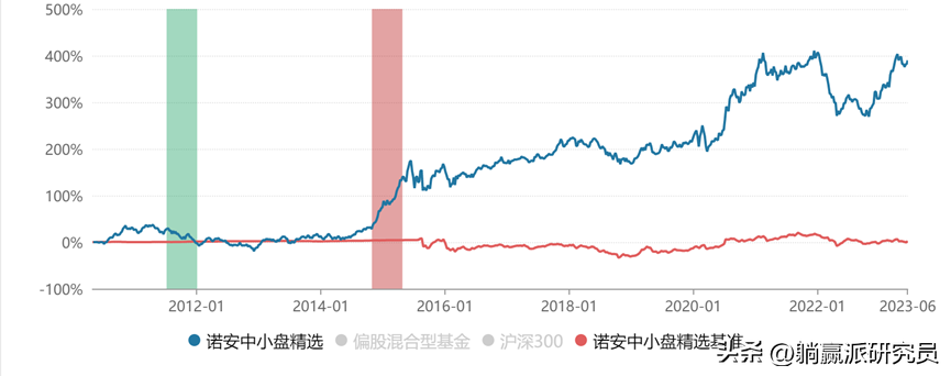 2016、2018、2022年市场都恰逢较大幅度的调整,而2016年,诺安中小盘是少数正收益的偏股方向基金之一,2018年其业绩回报大幅超越沪深300仅-25.31%的收益,且这两年分别获得了银河同类1/99、13/162的亮眼业绩,2022年诺安中小盘业绩仍旧超越了沪深300和同类平均。