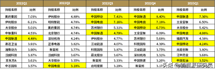 三大运营商,从去年三季报开始,反复出现在前十大重仓股中。
