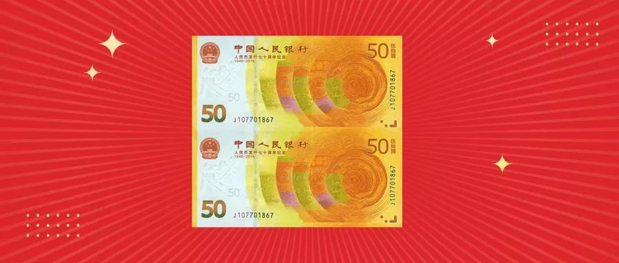 2018年,我国发行了一张面值50元的人民币发行70周年纪念钞。