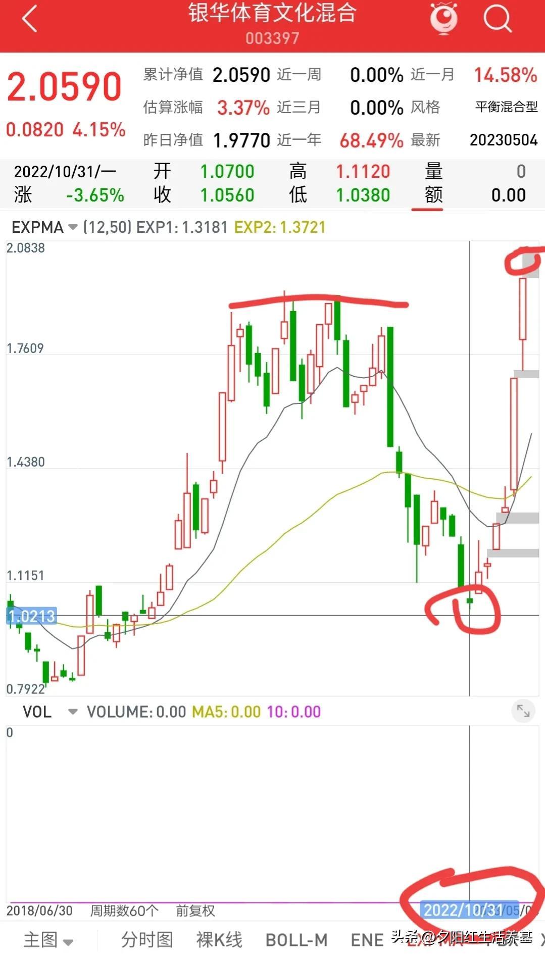 唐能管理这只基金是在2021年6月15日开始的,这只基金从最高点下来跌了46.21% ,在2022年10月31日见底,然后开始反弹,像一匹脱缰的野马,到目前为止,翻了一倍左右。