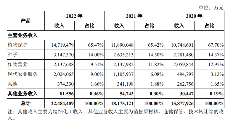 翻开招股书可见,先正达由四个业务单元组成——先正达植保、先正达种子、先正达集团中国和安道麦,相对应的,主营业务涵盖植物保护(即“植保”)、种子、作物营养产品的研发、生产与销售,同时还从事现代农业服务。在这些并不感性的赛道上,先正达几乎都做到了行业头部。