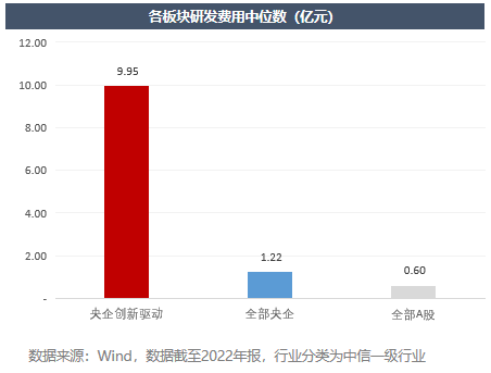 成份股研发费用的中位数更是达到9.95亿元,是全部央企中位数的8.2倍,是全市场中位数的16.5倍。