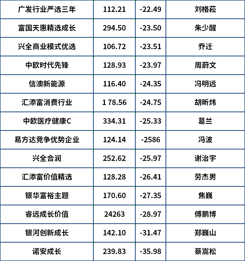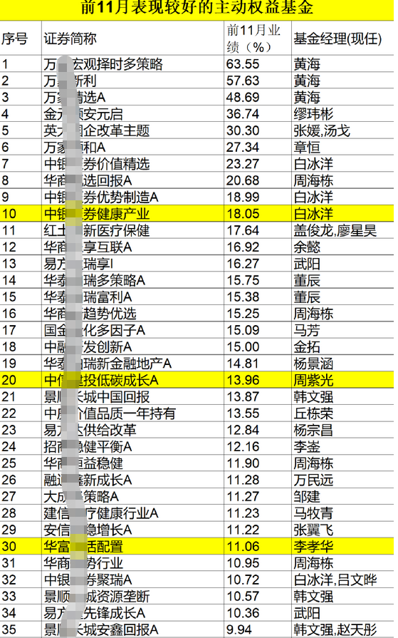 不过往下看你会发现,目前市场只有前34名基金收益超过了10%,并且名单中的基金经理除丘栋荣外,都是生面孔。可见,他们管理的基金规模不大,实际赚到钱的基民没几个。
