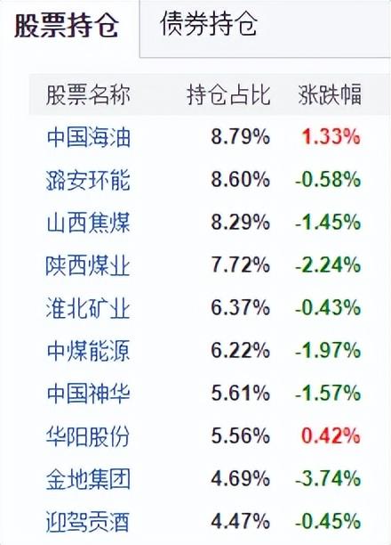 目前排名前三的基金就属于第一类,并且该基金经理跟蔡蔡一样,也是赌风格,all in全仓一把梭。前十大持仓股中有8支都是煤炭石油股。