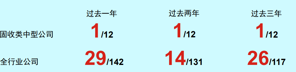 景顺长城主动固收投资绝对收益在固收类中型公司中排名前列。