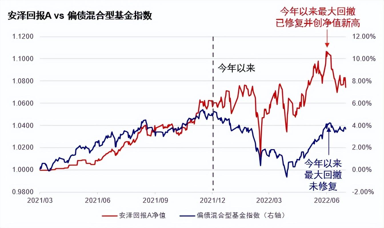 对比安泽回报与同类指数,今年以来权益市场走势剧烈下,安泽回报虽遭遇一定回撤,但基金经理能更快对前期回撤进行修复。