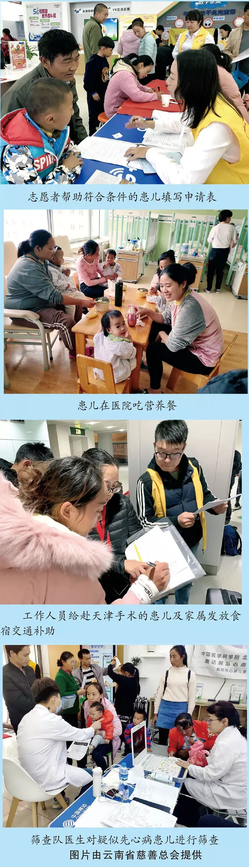 《慈善公益报》记者了解到,云南省慈善总会是负责接收捐款和按项目协议约定管理使用捐赠资金的部门,也是直接参与项目组织实施的主要单位。省慈善总会高度重视,认真履行应尽职责,在项目准备阶段积极提出意见建议,在项目实施过程中派工作人员参与了适龄儿童筛查、救治救助人员确认、组织护送患病儿童及陪护人员到天津泰达医院治疗,与院方沟通协调对患病儿童的救治服务等工作,还为患病儿童及陪护人员购买保险、给予食宿交通补助。通过具体实在的工作,体现“慈善为民”宗旨。